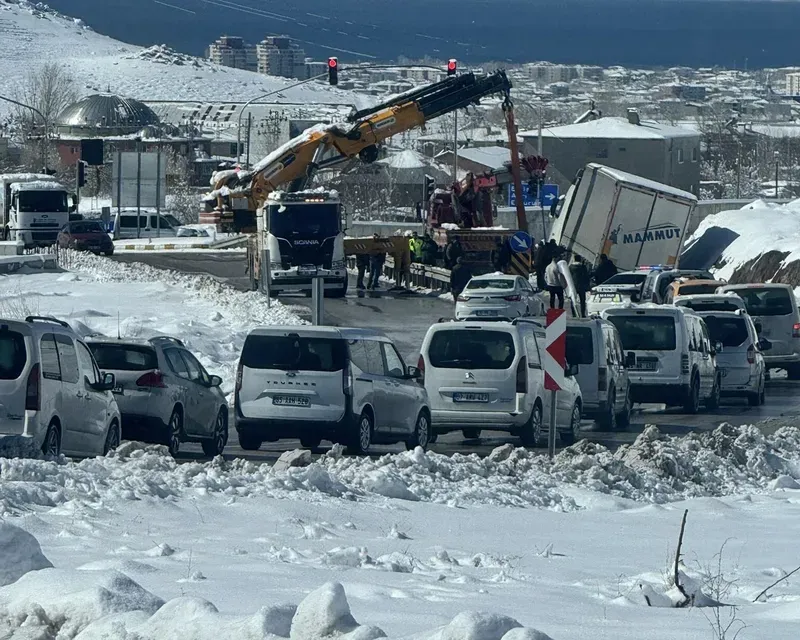 Van’ın Tuşba ilçesinde meydana gelen tır kazasında uzun araç kuyruğu oluştu.