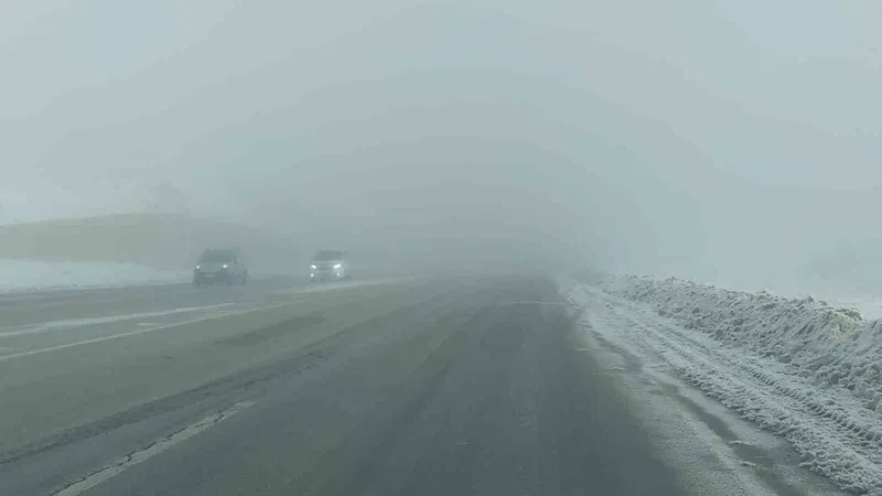 Van-Özalp kara yolunda sabah saatlerinde etkili olan yoğun sis, görüş mesafesini 30 metreye kadar düşürerek sürücülere zor anlar yaşattı.