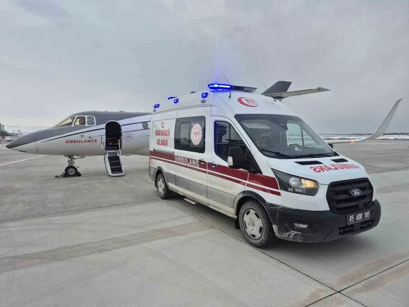 Van Yüzüncü Yıl Üniversitesi Dursun Odabaşı Tıp Merkezi’nde tedavi gören 3 aylık N.K. isimli bebek, ileri tetkik ve tedavi amacıyla Konya Şehir Hastanesi’ne uçak ambulans ile sevk edildi. Patent Duktus Arteriosus (PDA) tanısı bulunan minik hastanın nakli, Sağlık Bakanlığı’na bağlı ekiplerin koordinasyonunda planlandı. Sevk kapsamında görevlendirilen uçak ambulans, saat 16.40’ta Van Ferit Melen Havalimanı’na iniş yaptı. Burada hazır bekleyen sağlık ekipleri tarafından hastaneden alınan bebek, gerekli tıbbi donanım ve uzman ekip eşliğinde uçak ambulans ile Konya’ya nakledildi.
