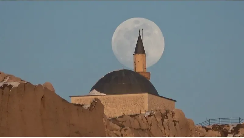 Van’da gece Van Kalesi üzerinde yükselen dolunay, izleyenlere adeta görsel bir şölen sundu.