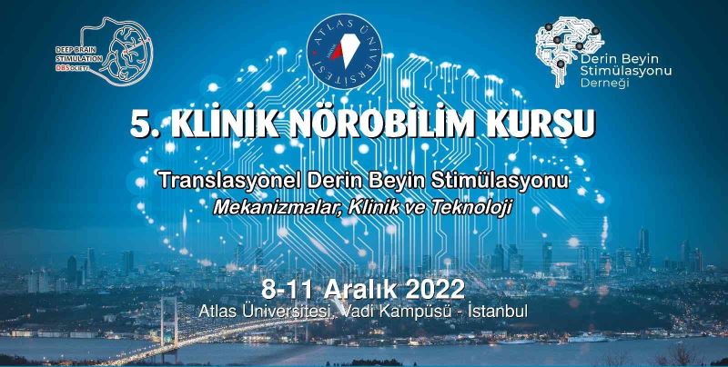 5. Klinik Nörobilim Kursu (CNC) Deep Brain Stimulation Society (DBSociety) ve Ulusal Derin Beyin Stimülasyonu Derneği tarafından Atlas Üniversitesi’nin katkılarıyla 8-11 Aralık tarihleri arasında Atlas Vadi Kampüste düzenleniyor.