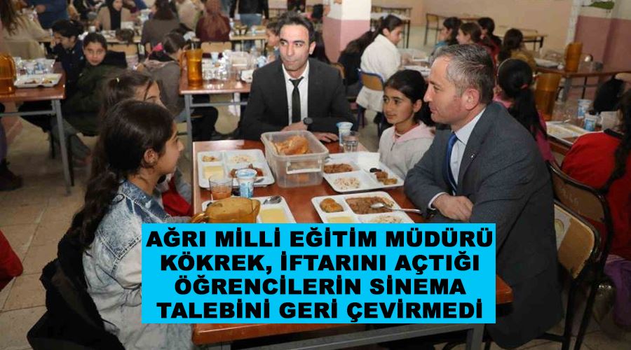 Ağrı İl Milli Eğitim Müdürü Hasan Kökrek, iftarını Ozanlar YBO’da kalan öğrencilerle açtı. Öğrencilerin sinema talebini geri çevirmeyen Kökrek, pansiyonda kalan 145 öğrenciyi sinemaya gönderecek.