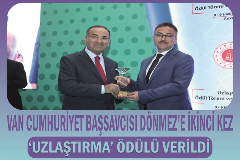 Adalet Bakanlığı her yıl Cumhuriyet Başsavcılıklarının uzlaştırma çalışma performanslarını değerlendiriyor. Bu çerçevede, geleneksel hale gelen törenle başarı sağlayan il ve ilçe Cumhuriyet Başsavcılıklarına ödül veriyor. Ankara’da düzenlenen törenle uzlaştırma başarı ödülünü, Adalet Bakanı Bekir Bozdağ’ın teşrifleriyle Van Cumhuriyet Başsavcılığı adına Cumhuriyet Başsavcısı Oğuzhan Dönmez’e takdim edildi. Konuya ilişkin konuşan Cumhuriyet Başsavcısı Oğuzhan Dönmez, kendilerini ödüle layık gören Adalet Bakanı Bekir Bozdağ teşekkür etti. Başsavcı Dönmez, “Türkiye’nin en başarılı illeri arasında bulunmamızı sağlayan Cumhuriyet Başsavcılığımız Uzlaştırma Büromuzdan sorumlu Cumhuriyet savcımıza, mesai arkadaşlarımıza ve uzlaştırmacı olarak görev yapan arkadaşlarımıza teşekkürlerimi sunuyorum” dedi.
