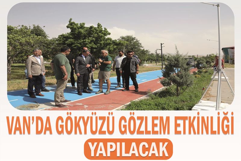 Sanayi ve Teknoloji, Gençlik ve Spor, Kültür ve Turizm bakanlıklarının himayesinde, Van Valiliği, Van Büyükşehir Belediyesi, Yüzüncü Yıl Üniversitesi, Doğu Anadolu Kalkınma Ajansı ve Türkiye Turizm Tanıtım ve Geliştirme Ajansının (TGA) destek ve katkılarıyla gerçekleştirilecek ‘Gökyüzü Gözlem Etkiliği’, gökyüzü tutkunlarını 3-5 Temmuz’da Fidanlık Parkı’nda bir araya getirecek.