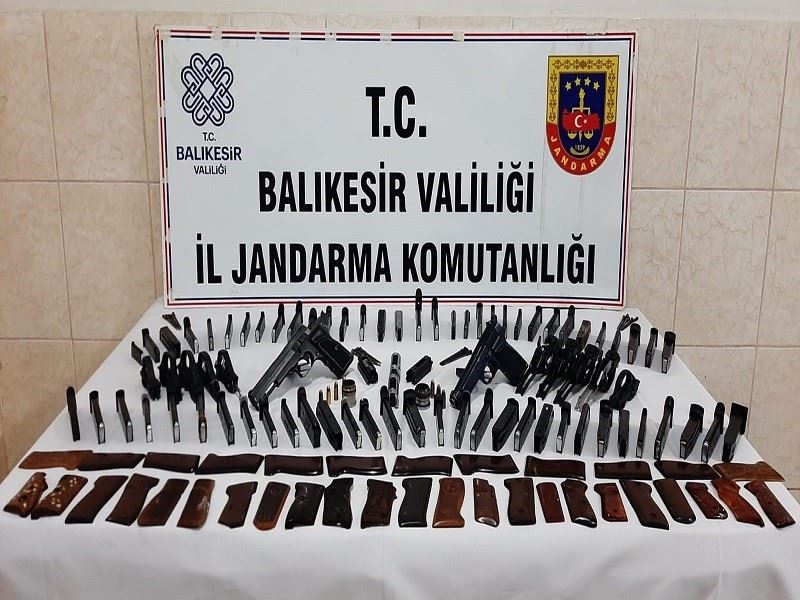 Edinilen bilgiye göre, Balıkesir İl Jandarma Komutanlığınca silah, mühimmat imal ve ticaretine yönelik çalışma gerçekleştirildi. Burhaniye ve Gömeç İlçelerinde silah, mühimmat imal ve ticareti yaptığı tespit edilen 3 şüphelinin işyeri ve ikamet adreslerine operasyonlar düzenlendi. Yapılan aramalarda, 4 adet tabanca, 26 adet fişek, 81 adet şarjör, 621 adet muhtelif silah parçası, 1 adet torna makinası ve 3 adet namlu açmada kullanılan torna parçası ele geçirildi. Olaya karışan 3 şüpheli yakalanarak haklarında adli işlemler başlatıldı.