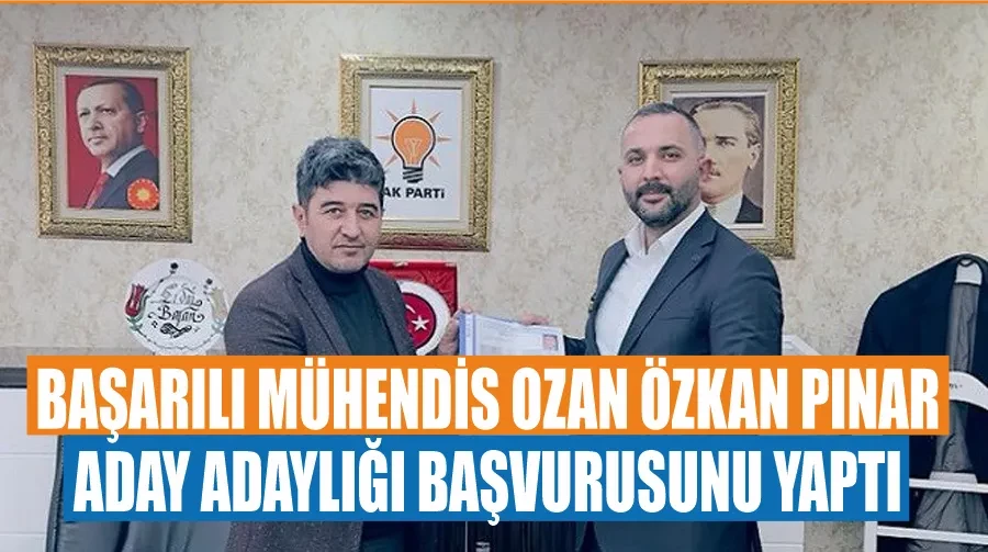 Van, Şırnak ve Tekirdağ başta olmak üzere birçok il ve ilçede başarılı projelere imza atan Vanlı iş insanı, mühendis Ozan Özkan Pınar, AK Parti’den Tuşba belediye başkan aday adayı oldu. Dün ilçe binasında düzenlenen törenle İlçe Başkanı Erdal Baran’a başvuru dosyasını teslim eden Ozan Pınar'ı ailesi ve dostları da yalnız bırakmadı.