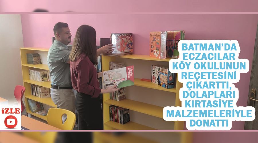 Batman’da eczacılar köy okulunun reçetesini çıkarttı, dolapları kırtasiye malzemeleriyle donattı.