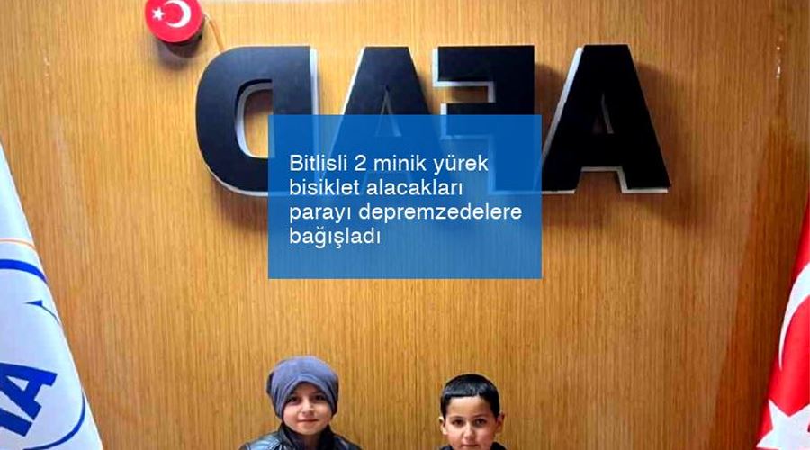 Kahramanmaraş merkezli depremlerin ardından depremzedelerin yaraları hızlı bir şekilde sarılmaya çalışırken Bitlis’te yaşayan iki kardeş, bisiklet almak için biriktirdiği paralarını depremzedeler için bağışladı. Türkiye, Kahramanmaraş merkezli 7.6 ve 7.7 büyüklüğündeki depremlerin yaralarını sarmak için tek yürek oldu. Bitlis’te yaşayan Mustafa ve Musab Koçyiğit adlı 2 kardeş bisiklet almak için biriktirdiği paralarını deprem bölgesindeki çocuklara göndermek üzere Bitlis İl Afet ve Acil Durum Yönetimi Müdürlüğü’ne bağışladı. 2 kardeşin gösterdiği davranış herkese örnek olurken yazdıkları not ise duygulandırdı.