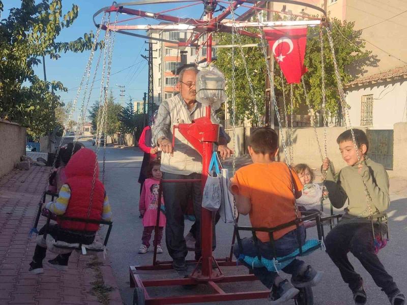 Niğde’de yaşayan 63 yaşındaki Recep Göktaş, çocuklara nostaljik seyyar salıncak keyfi yaşatıyor.