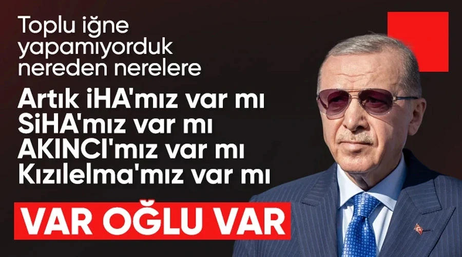 Erdoğan, "Artık İHA'mız var, SİHA'mız var, AKINCI'mız var, KIZILELMA'mız var… Var oğlu var... Milli güvenliğimize dair konularda adım atarken, artık kimsenin icazetini aramıyoruz. Artık sen ne dersin diye sormuyoruz." ifadelerini kullandı.