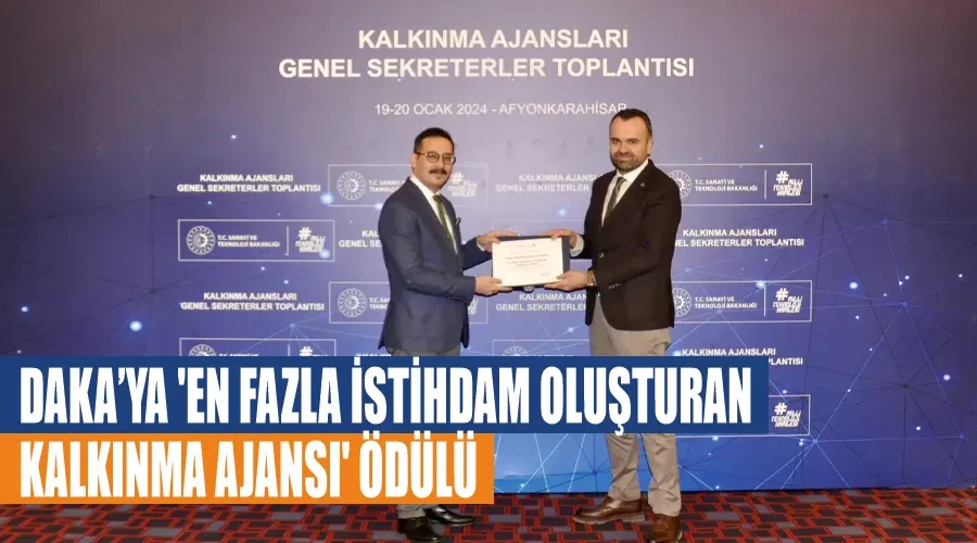Kalkınma Ajansları Genel Müdürlüğü, Doğu Anadolu Kalkınma Ajansı'na (DAKA) “En Fazla İstihdam Oluşturan Kalkınma Ajansı” sertifikası verdi.