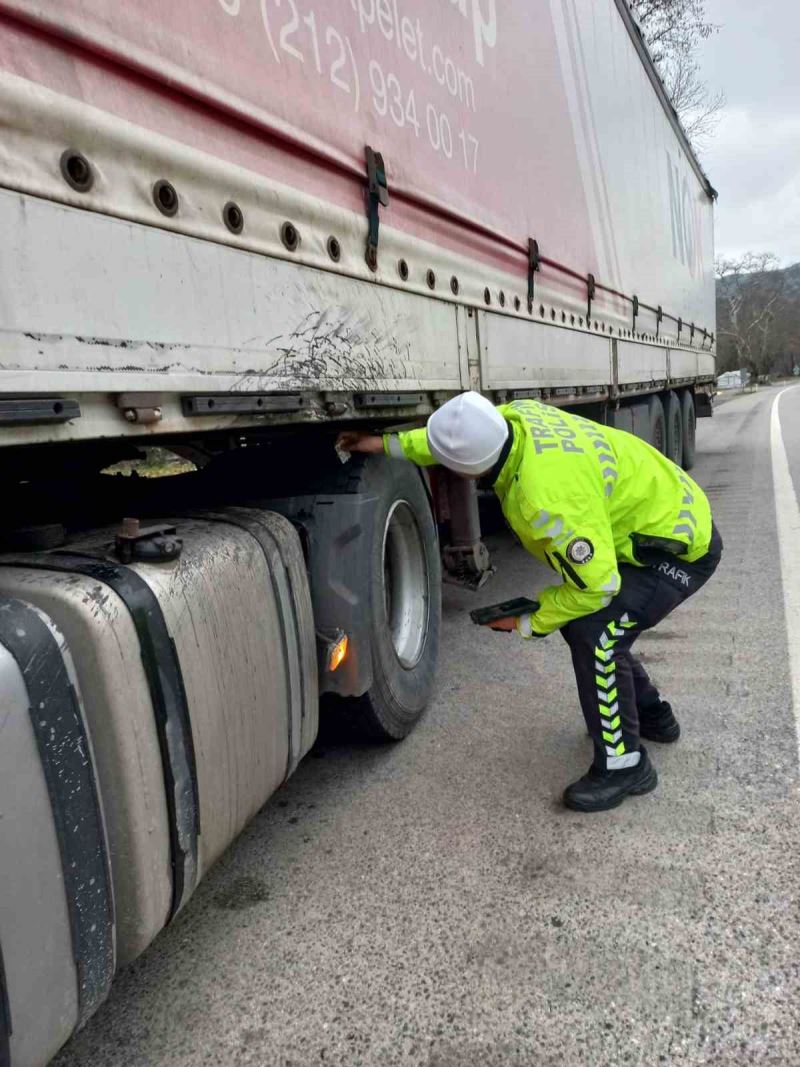 Zonguldak’ta ekiplerin kış lastiği uygulamasında kurallara uymayan 12 sürücüye 23 bin 666 lira idari para cezası uygulandı.