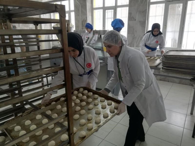 Arama kurtarma ekiplerinin büyük mücadele verdiği deprem bölgesinin ekmek ihtiyacını karşılamak için Erzurum Hamidiye Mesleki ve Teknik Anadolu Lisesi öğretmen ve öğrencileri seferber oldu.