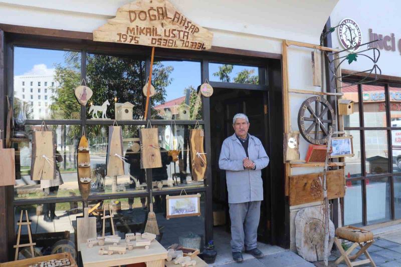 Kahramanmaraş merkezli depremlerin etkilediği Malatya’da evi hasar alan Mikail Fırat, ahşap atölyesinde hem sanatını icra ediyor hem de yaşamını sürdürüyor.