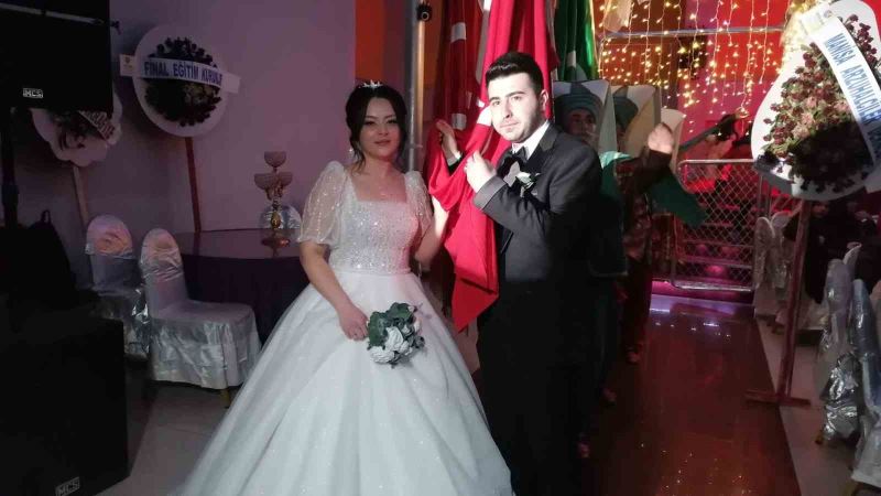 Düğünde davetliler tarafından gelin ve damada takılan 15 bin TL düğünden sonra depremzedeler için kullanılmak üzere AFAD’a bağışlandı.