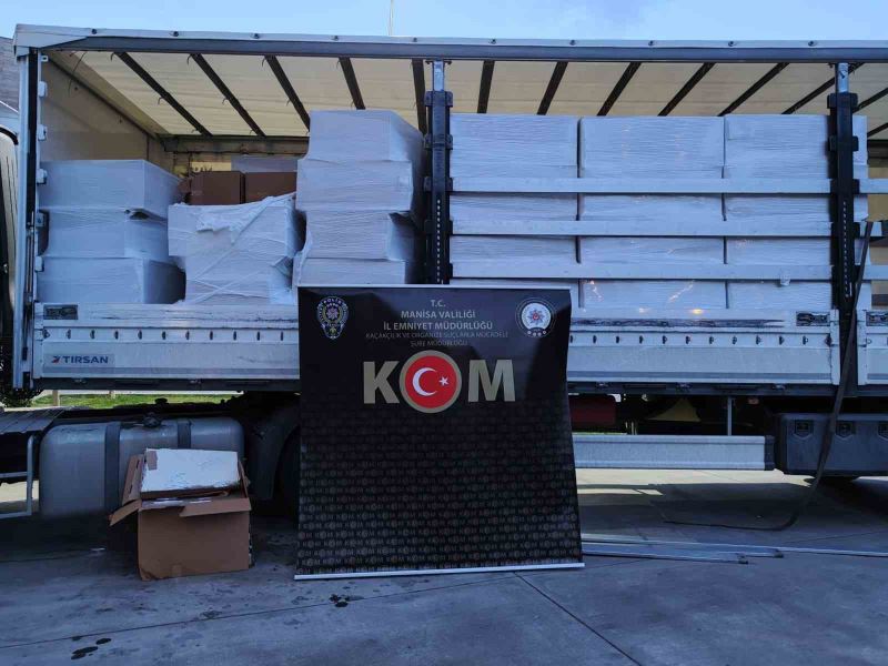 Manisa İl Emniyet Müdürlüğü Kaçakçılık ve Organize Suçlarla Mücadele Şube Müdürlüğü tarafından yapılan saha çalışmalarında, Manisa’ya başka illerden bandrolsüz kaçak sigara getirilerek piyasaya sürüleceği tespit edildi. Sürücülüğünü V.Y. isimli şahsın yaptığı tır, takibe alınarak Turgutlu ilçesi girişinde durduruldu. Cumhuriyet Savcısının talimatı ile tırda yapılan aramada tırın dorse kısmında koliler halinde 4 milyon 200 bin adet bandrolü bulunmayan kaçak sigara ele geçirildi. Olayla ilgili 1 şüpheli şahıs yakalanırken, tahkikatın devam ettiği öğrenildi.