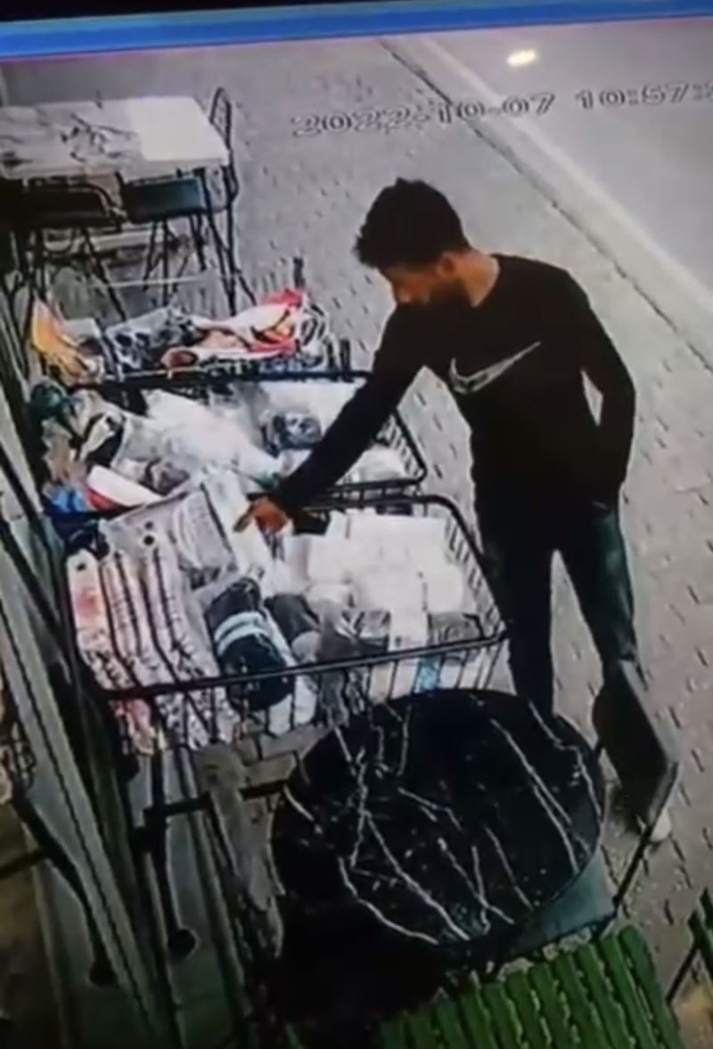 Bursa’da bir kişi, kaldırım üzerinde reklam amaçlı duran nevresim takımını çaldı.
