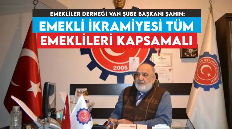 Cumhurbaşkanı Recep Tayyip Erdoğan'ın emeklilere bir kereye mahsus 5 bin lira ikramiye verileceği haberiyle ilgili açıklama yapan Tüm Emekliler Derneği Van Şube Başkanı Naci Şahin, seyyanen zam istediklerini belirterek, 5 bin liralık ikramiyenin tüm emeklileri kapsamasını istedi.
