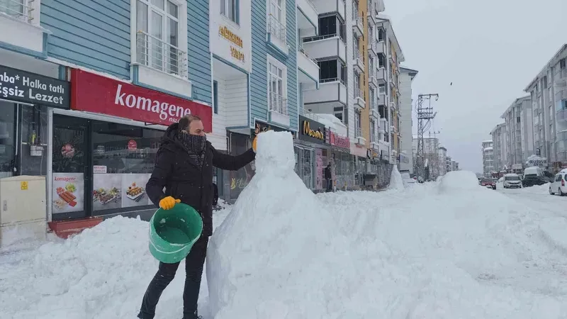 Kardan adam yapan Emrah Gürbüz isimli esnaf, karın yağmasıyla arkadaşlarıyla kardan adam yaptığını belirterek, "Yaklaşık 3 metre büyüklüğünde yakın kardan adam yapıp karı eğlenceye çevirdik. Uzun zamandır böyle bir kar yağmamıştı. Gerçekten böyle bir kara ihtiyacımız vardı. Bizler de işlerin olmayışını fırsat bilerek esnaf arkadaşlarla beraber karın yağışını eğlenceye çevirdik. Yaptığımız kardan adamdan sonra buradan geçenler gelir fotoğraf çekiyorlar. Yaklaşık 2 saat gibi bir emek verdik ve emeğimizin de karşılığını aldık" dedi.