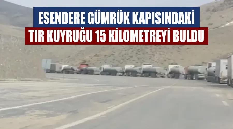 Esendere Sınır Kapısı’nda bekleyen tırların oluşturduğu kuyruk, yaklaşık 15 kilometreye ulaştı. Tır sürücüleri, Esendere Sınır Kapısı’ndan İran’a geçip yüklerini teslim etmek için sıra bekliyor. 15 kilometrelik tır kuyruğu oluştuğunu belirten Bahri Tekin, “Öğle saatlerinde Esendere’den Yüksekova’ya gittiğimiz sırada 15 kilometreyi aşacak derecede tır kuyruğu vardı. Sorduğumuzda ise İran tarafından kaynaklı olduğu söylenildi. İnşallah kısa sürede bu çile biter, herkes yoluna devam eder. Yoksa günlerdir bunlar burada bekliyor” dedi.