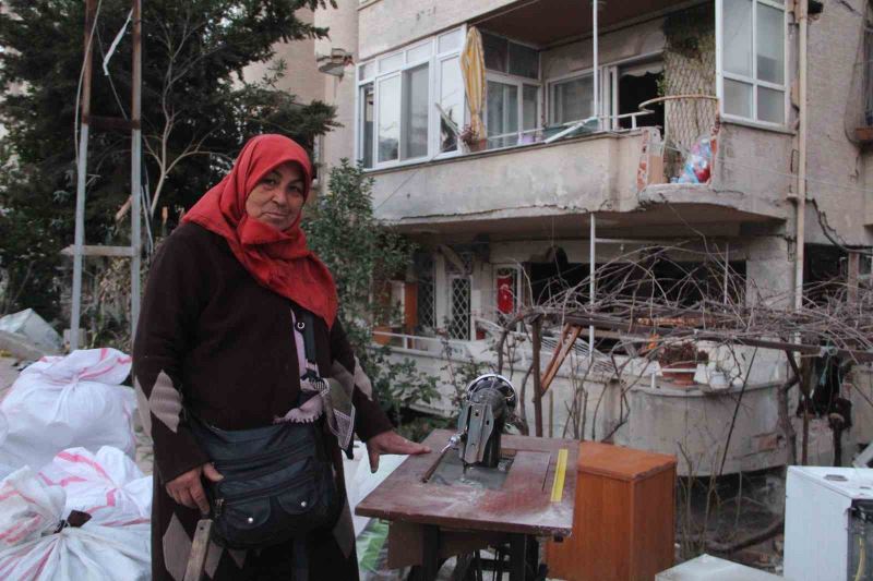 Hatay’ın Antakya ilçesinde yaşayan 65 yaşındaki Dudunaz Özsoy, terzilik yaparak aldığı evi depremde enkaza dönmesine rağmen, 47 yıllık dikiş makinesini bırakmadı.