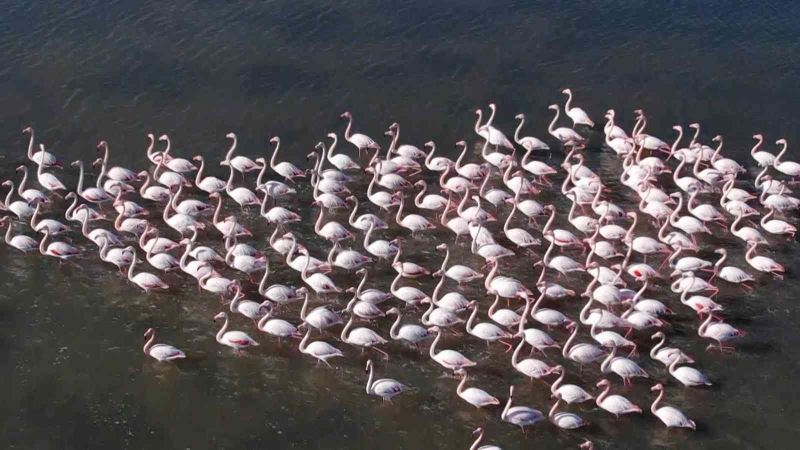 Flamingoların Tuzla sulak alanında oluşturduğu görsel şölen ise havadan görüntülendi.