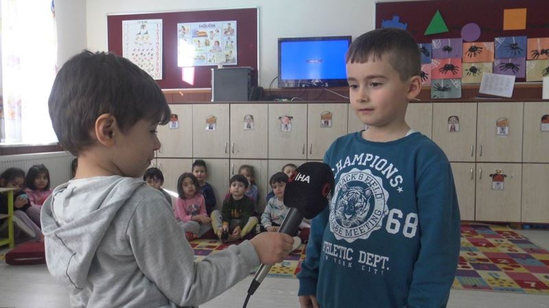 Karaman’ın Ermenek ilçesinde gazetecilik mesleği tanıtılan anaokulu öğrencileri kendi haberlerini kendileri yaptı.