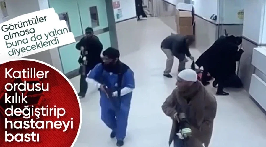 Elleri silahlı İsrailli unsurların; doktor, hemşire ve sivil kılığına girerek hastaneye baskın düzenlediği anlar güvenlik kamerasına yansıdı.