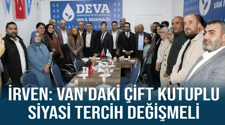 Demokrasi ve Atılım Partisi (DEVA) Van İl Başkanı Av. Erkan İrven, uzun süredir Van'da iki siyasi partinin ön planda olduğunu söyleyerek, kentin siyasetteki tercih tabusunun değişmesi gerektiğini dile getirdi. İrven, "Van'ın sözüm ona ilk iki sırada olan siyasi partilerinin sahip olduğu dar kalıplar ve bir türlü içinden çıkamadıkları tabular, Vanlı hemşerilerimizi her geçen gün, mutsuzluğa, fakirliğe ve ayrıştırmaya götürmektedir" diye konuştu.