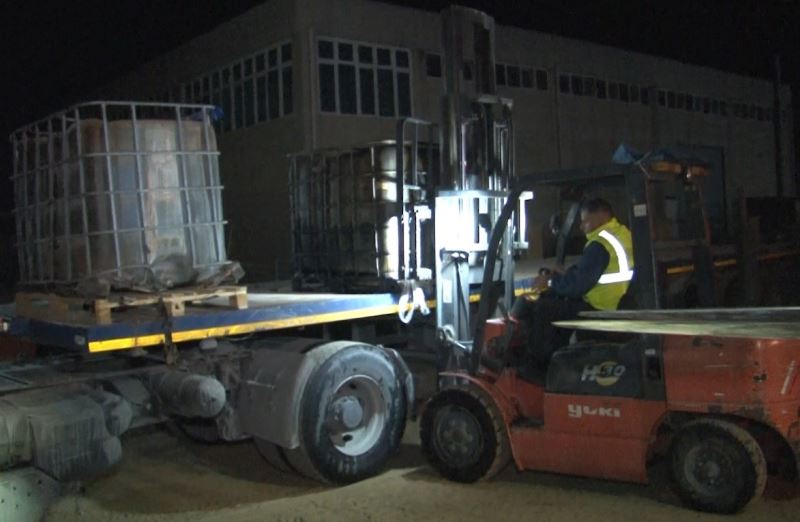 İzmir’in Torbalı ilçesinde polis ekiplerince 2 depoya düzenlenen operasyonda, ele geçirilen 1 milyon litre karışımlı akaryakıt, bulunduğu depolardan imha edilmek üzere taşınıyor.