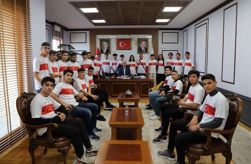 Dulkadiroğlu Kamu Külliyesi önünden gençleri milli maça uğurlayan Dulkadiroğlu Belediye Başkanı Necati Okay, gençlere birer adet de milli formayı hediye etti.