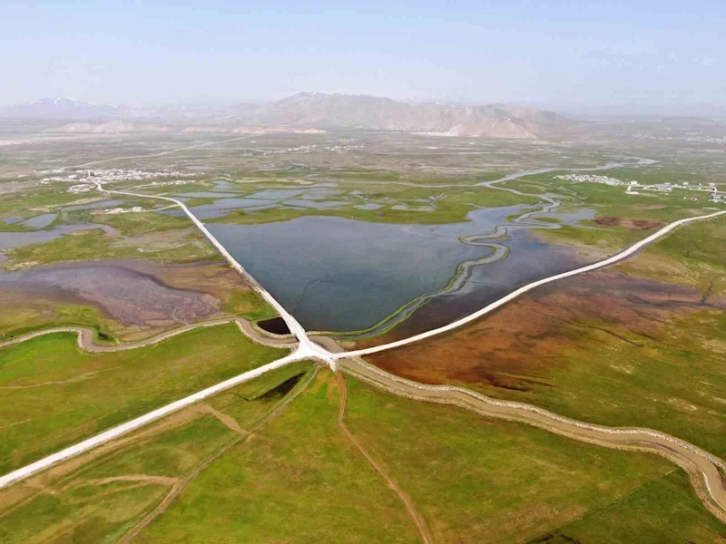 Van’da Çaldıran ilçesinde karın erimesiyle Çaldıran Ovası’ndaki arazilerin büyük bir bölümü su altında kaldı.