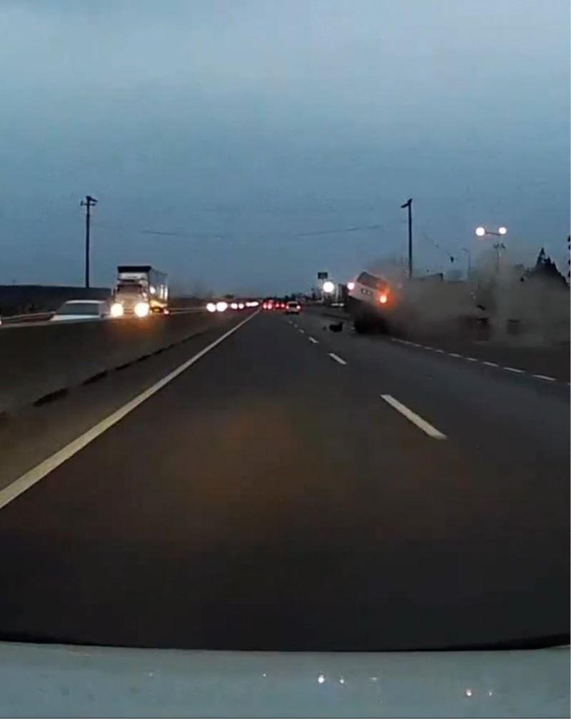 Öte yandan, kaza anı panelvanı takip eden otomobil sürücüsünün araç kamerasına yansıdı. Görüntülerde panelvan yoldan çıkarak yol kenarındaki beton bariyere çarparak yol ortasında bir daha düşüyor. Bu sırada arkasından gelen araç sürücüsü ani bir refleksle panelvana çarpmaktan son anda kurtuluyor.