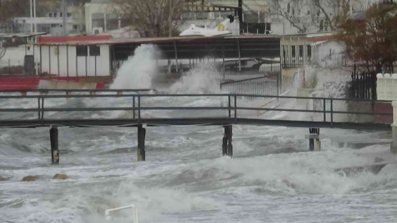 Balıkesir’in Edremit, Burhaniye, Gömeç ve Ayvalık ilçelerinde dünden bu yana şiddetini artırarak devam eden lodos fırtınası hayatı olumsuz etkiliyor. Edremit ilçesinde Akçay, Zeytinli ve Altınkum sahillerinde oluşan dev dalgalar evlerin bahçelerine kadar geldi. Bazı yük gemileri de Edremit Körfezi ve Sarımsaklı Plajı açıklarına demirledi. Ayrıca Ayvalık ilçesinden Yunanistan’ın Midilli Adası’na düzenlenen feribot seferleri karşılıklı olarak hava ve deniz muhalefeti nedeniyle iptal edildi. Kuzey Ege’de rüzgarın hızı 90 kilometreyi geçti.