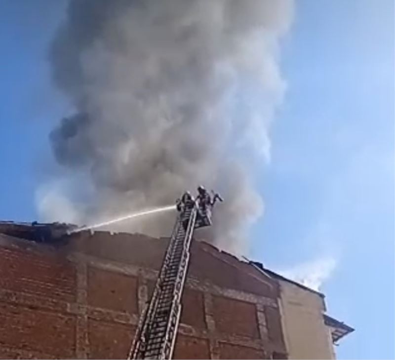 Malatya’nın Battalgazi ilçesinde depremlerde hasar alan bir apartmanın çatısında yangın çıktı. Alevlerin göğe yükseldiği yangın itfaiye tarafından söndürüldü.