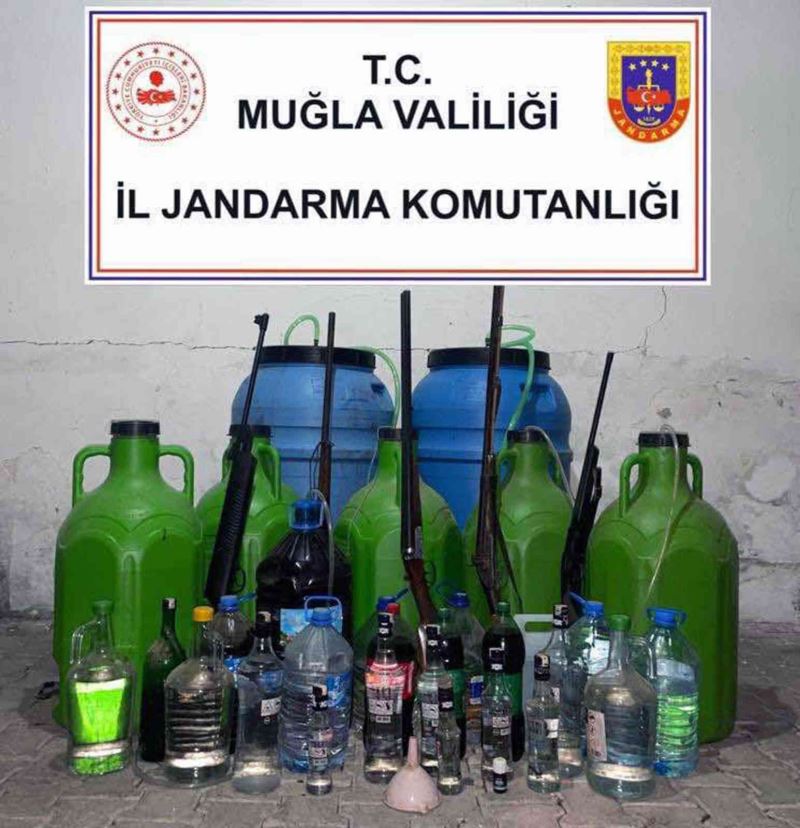 Muğla İl Jandarma Komutanlığınca yapılan istihbari çalışmalarda Milas İlçesi Selimiye ve Bafa Mahallelerinde ikamet eden M.Y., A.D. ve Ö.İ. isimli şahısların ikametlerinde özel düzenek (damıtma sistemi) kurmak suretiyle sahte/kaçak alkol ürettikleri bilgisi alındı. İstihbarat Şube Müdürlüğü ve Milas İlçe Jandarma Komutanlığı ekiplerince şahısların ikametinde arama yapıldı. Yapılan aramada 932 litre el yapımı şarap, 54 litre el yapımı rakı, anason yağı, alkol yapımında kullanılan huni, 3 adet tek kırma ruhsatsız av tüfeği, 2 adet çift kırma ruhsatsız av tüfeği ve 25 adet fişek ele geçirilmiştir.