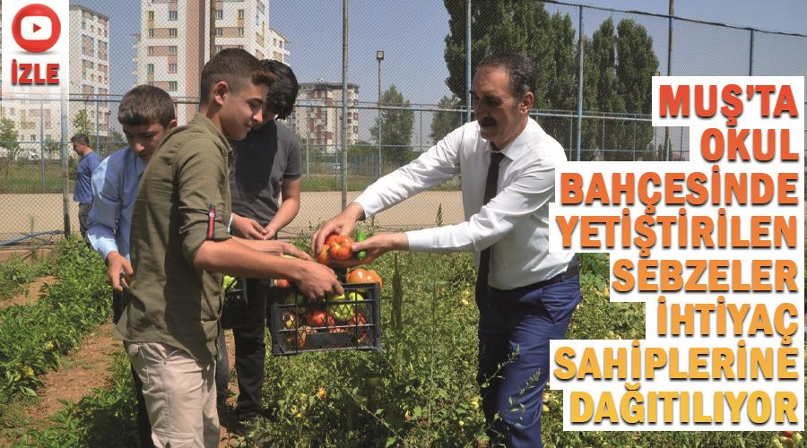 Muş’ta öğretmen ve öğrenciler bostanda yetiştirdikleri ürünleri ihtiyaç sahiplerine ulaştırmaya devam ediyor. 2 yıl önce okul idaresinin de desteğiyle okul bahçesinde kullanılmayan alanı değerlendiren öğretmen ve öğrenciler, tel örgü ile çevreledikleri 500 metrekarelik alanı bostana dönüştürmüştü. İlkbahar mevsimiyle fideleri yeniden toprakla buluşturan öğretmen ve öğrenciler, bir süre bostanın bakımını yaparak ürünler yetiştirdi. Bahçede yetişen domates, salatalık, biber, soğan, ayçiçeği, kabak, fasulye gibi ürünler toplanarak, okul çevresinde tespit edilen ihtiyaç sahiplerine okul idaresi tarafından ulaştırılıyor.