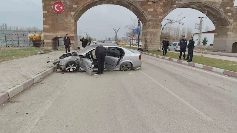 Van’ın Erciş ilçesi girişindeki kemerin ayağına çarpan otomobildeki 3 kişi yaralandı.