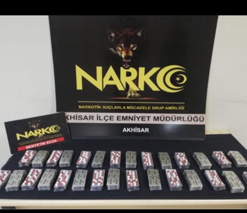 Manisa İl Emniyet Müdürlüğü Narkotik Suçlarla Şube Müdürlüğü, Akhisar Narkotik Suçlarla Mücadele Grup Amirliği ve İstihbarat Grup Amirliği görevlilerince uyuşturucu veya uyarıcı madde ticareti yapan, nakleden ve kullanan şahıslara yönelik yapılan çalışmalarda Akhisar ilçesinde kovalamaca sonucu durdurulan bir araçtan atılan poşet içerisinde yapılan aramada, 1617 adet sentetik ecza hapı ele geçirildi. Konuyla ilgili 2 şüpheli şahıs ’Uyuşturucu veya uyarıcı madde imal ve ticareti yapmak’ suçundan gözaltına alındı. Şüpheli şahıslar S.G. (32) ve M.Y. (22), sevk edildikleri adli makamlarca tutuklandı.