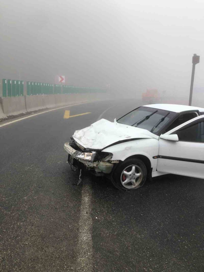 Bolu Dağı’nın D-100 Karayolu geçişinde yoğun sis sebebiyle sürücüsünün kontrolünden çıkan otomobil, bariyerlere çarptı.