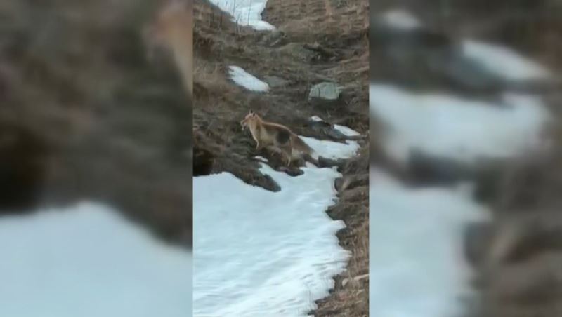 Bayburtlu bir vatandaş soğuk havada yiyecek bulmakta zorlanan tilkiyi elleriyle besledi.