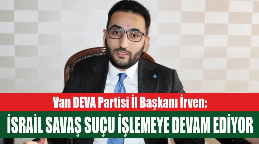 Deva Partisi Van İl Başkanı Erkan İrven, İsrail'in bir ayı aşkın süredir her türlü insanlıktan uzak bir politikayla Filistin'e yönelik saldırılarını sürdürdüğünü belirterek, "İsrail, hastane, okul, cami, ibadethane ayrımı yapmaksızın bombalı saldırılarını sürdürüyor. Gazze'de, çocuk, yaşlı, kadın, genç demeden insanlar ölüyor. İsrail savaş suçu işlemeye devam ediyor. Dünya devletleri ise olaylara sus-pus. Hükümetimiz ise kalıcı adımlar atmak yerine mitingler düzenliyor. Bu doğru değil, daha somut adımlar atılmalı" diye konuştu.