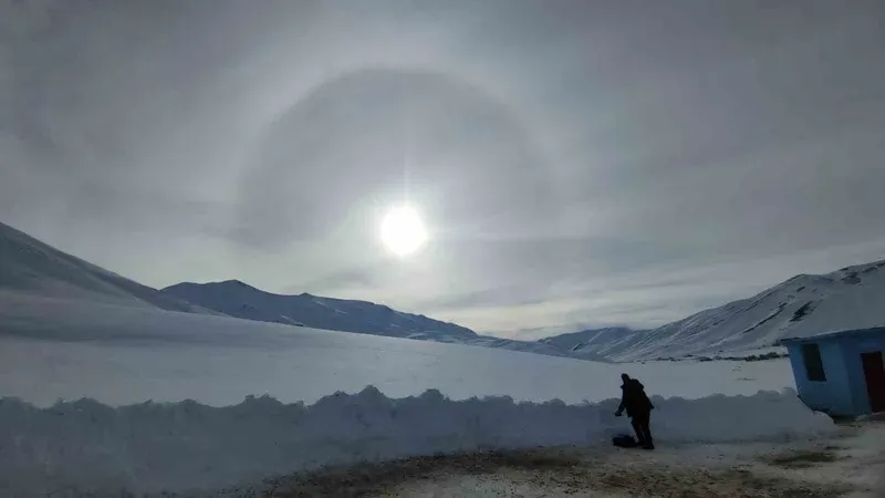 Van semalarında nadir görülen ve halk arasında "Güneş Halkası" olarak bilinen doğa olayı gerçekleşti. Gökyüzüne bakanlar, güneşin etrafını çember şeklinde saran renkli hale ile karşılaştı.