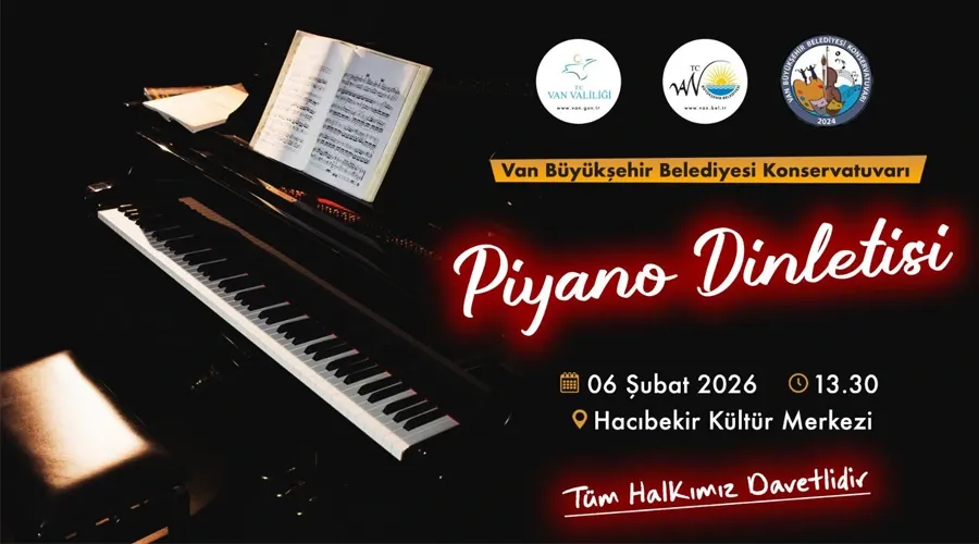 Van'da sanat etkinlikleri kapsamında gerçekleşecek piyano resitali, 6 Şubat Cuma günü saat 13.30'da başlayacak. Sanatın birleştirici gücünü hissetmek ve şehrin gelecek vadeden genç yeteneklerini desteklemek isteyen tüm sanatseverler, bu ücretsiz konser etkinliğine davetli. Etkinlik, Van halkına sanatla dolu bir cuma öğlesi vaat ediyor.