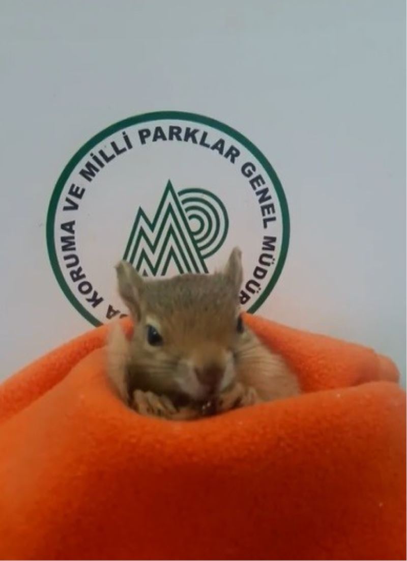Çanakkale’de vatandaşlar tarafından bulunan yavru sincap, Çanakkale Doğa Koruma ve Milli Parklar (DKMP) Şube Müdürlüğü’nde koruma altına alındı.