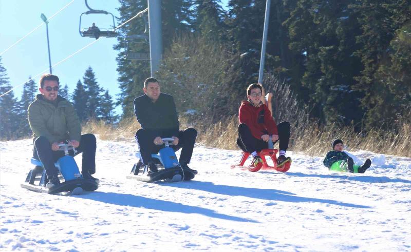 Yeni yıl tatilini değerlendirmek isteyen vatandaşlar, Kastamonu-Ilgaz sınırında bulunan Ilgaz Dağı’nda karın tadını çıkarttı. Kar kalınlığının yetersiz olması sebebiyle açılmayan pistlerde vatandaşlar kızakla kayarak eğlendi.