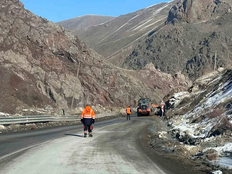 Yüksekova-Van kara yolu üzerindeki Yeni Köprü bölgesinde dağdan düşen kaya parçaları temizlendi.